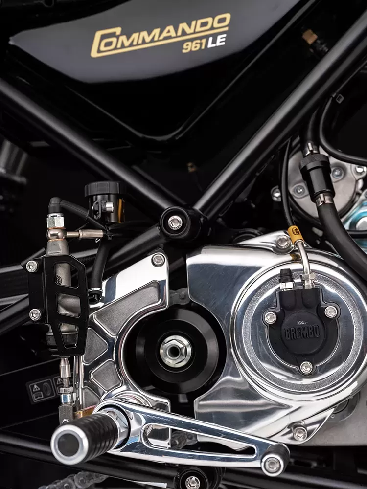Based on the Commando 961, the Commando 961 LE ‘Energette’ takes styling from the original machine with its deep yellow paint, brown leather saddle, alloy yokes, natural alloy engine, silver headlight, polished alloy handlebars and polished Öhlins suspension. The colour-matched seat cowl also wears a commemorative 125-year anniversary crest, bearing the Limited Edition logo.